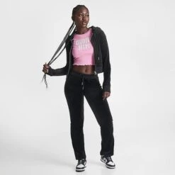 Women’s Juicy Couture OG Big Bling Velour Zip-Up Hoodie Freesia – 11000536 543