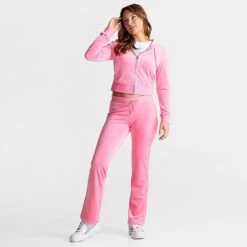Women’s Juicy Couture OG Big Bling Velour Zip-Up Hoodie Hot Hot – 11000536 676