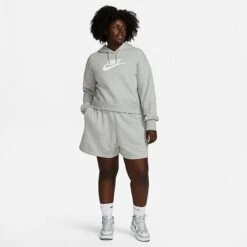 Women’s Nike Sportswear Club Fleece Pullover Hoodie (Plus Size) Dark Grey Heather/White – DV5090 063