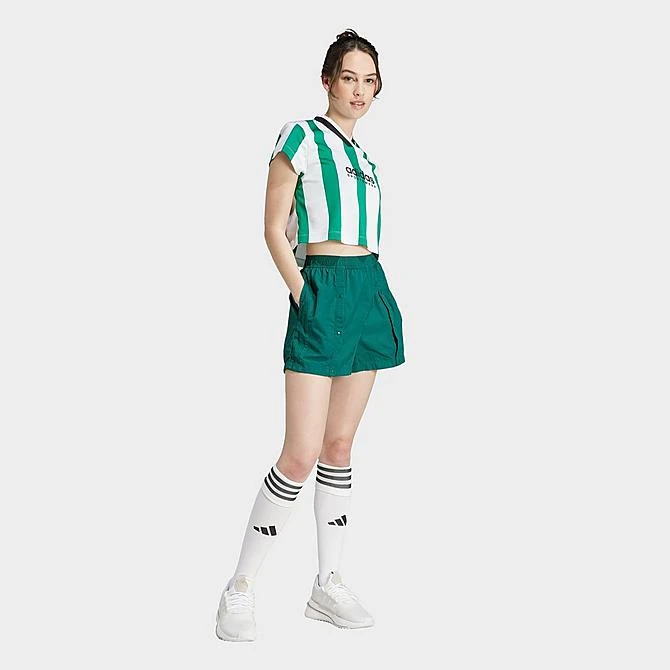 Show off those stripes that you strove for in the Women’s adidas Tiro Colorblock Cropped T-Shirt. Cropped with a slim fit and stand-up collar, this comfy color-blocked soccer tee was constructed to complement your active lifestyle with your athletic aesthetic.
