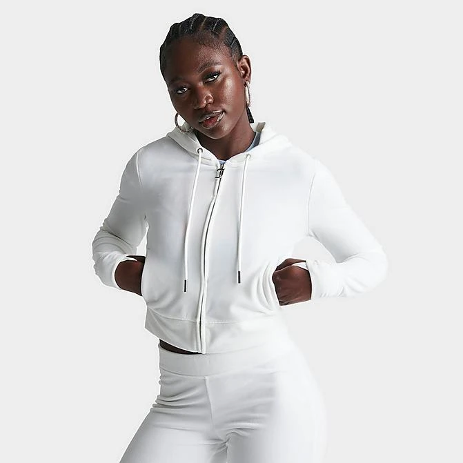 Women’s Juicy Couture OG Big Bling Velour Zip-Up Hoodie Cream Soda – 11000946 102