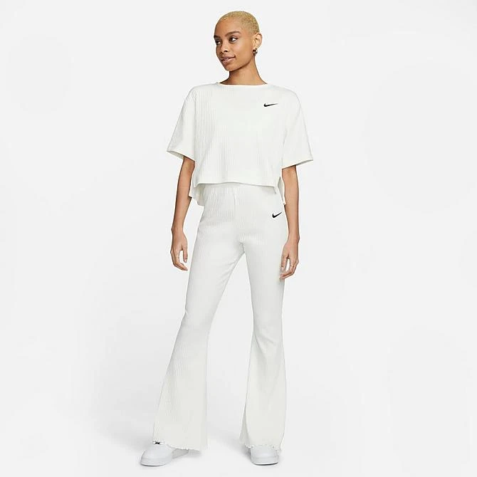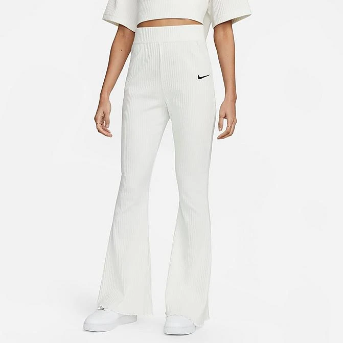 - Knitted, ribbed flare pants with embroidered Nike Swoosh at left thigh