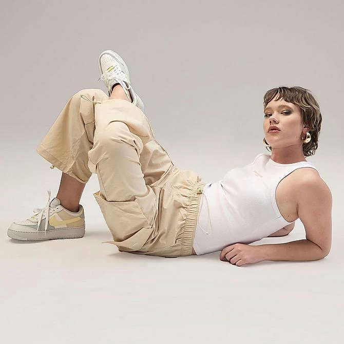 - Sleeveless tank silhouette with a scoop neck