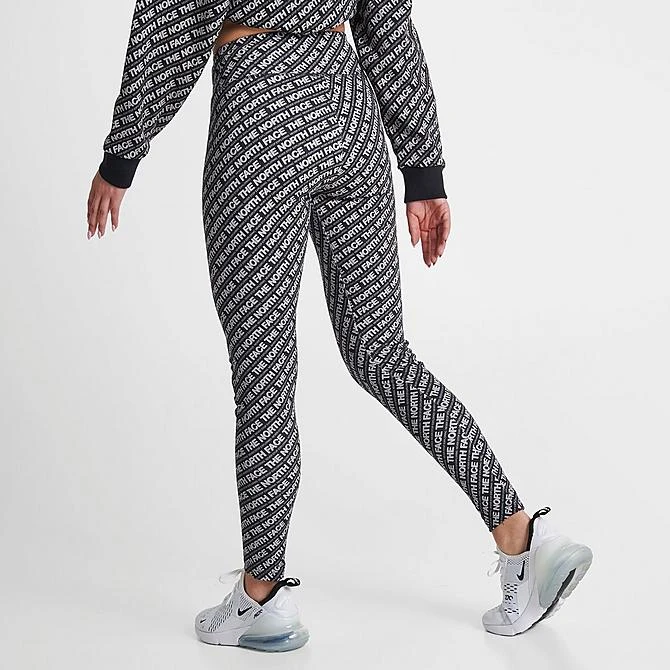 - Active lifestyle leggings with The North Face all-over logotype print and heat transfer TNF logos at left thigh and back right calf